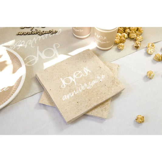 20 Serviettes en Papier 33cm - Kraft Joyeux Anniversaire