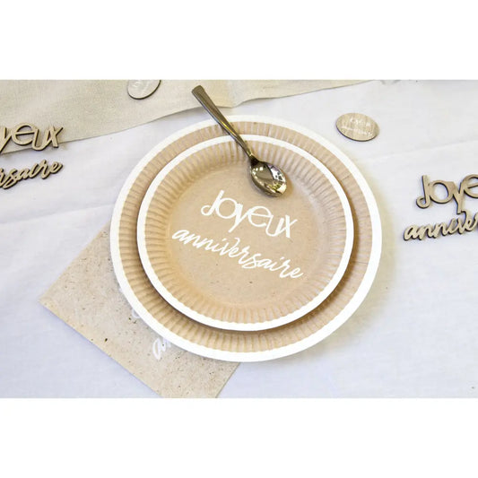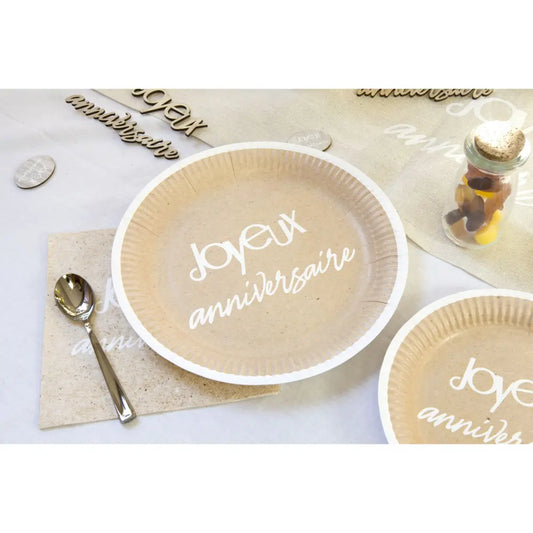 6 Assiettes en Carton D18cm - Kraft Joyeux Anniversaire