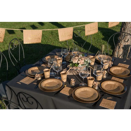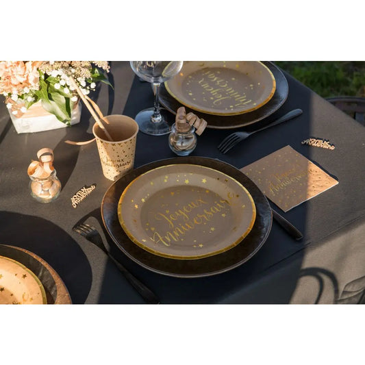 10 Assiettes en Carton D22.5cm - Joyeux Anniversaire Métal Kraft