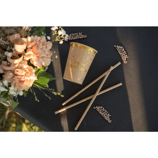 10 Gobelets en Carton 27cl - Joyeux Anniversaire Métal Kraft