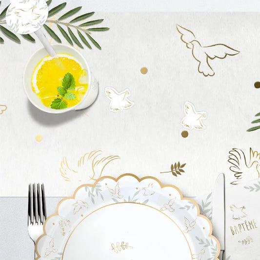 Sur-chemin de table en toile "Baptême" impression blanche - 14 cm x 4 m