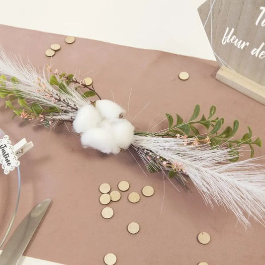 Centre de Table Allongé Rose et Fleurs Séchées - Grand Modèle