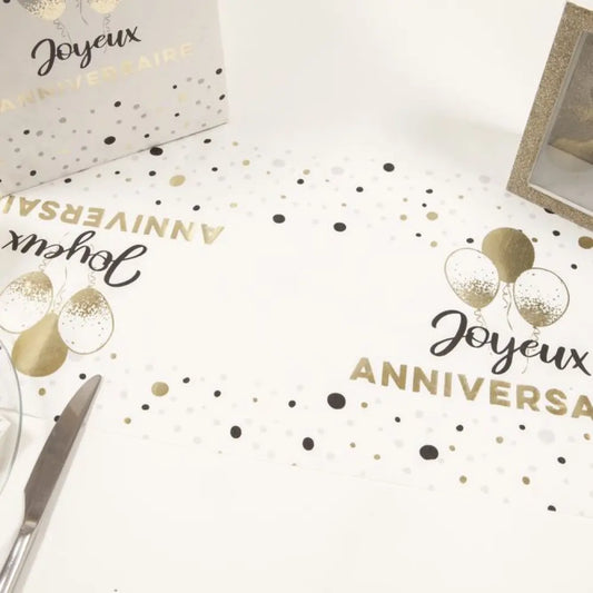 Chemin de Table en Toile façon Coton - "Joyeux Anniversaire Splendid" - 3m