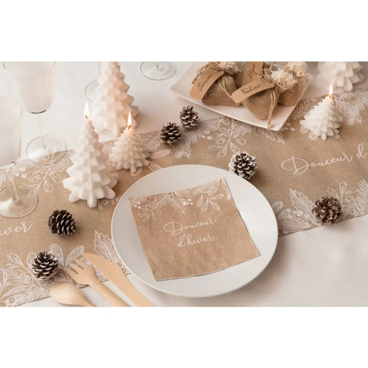 20 Serviettes en Papier 33x33cm - Douceur d'Hiver Naturel