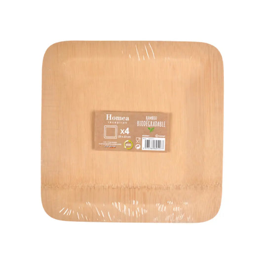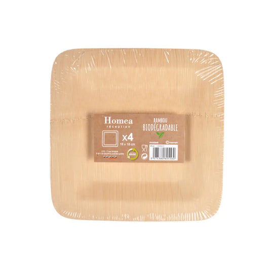 12 Assiettes Carrées en Canne à Sucre 20cm - NATUREL