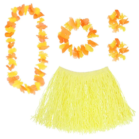 Set Hawaïen Kalia - 1 collier + 1 bandeau + 2 bracelets + 1 jupe (Coloris au choix)