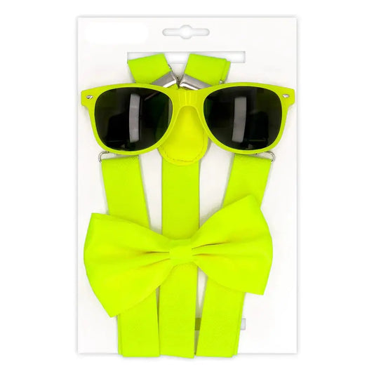 Set Lunettes, Bretelles et Nœud Papillon - Vert Fluo