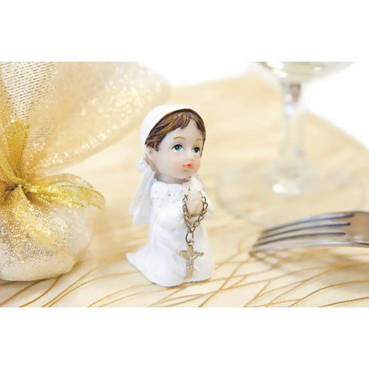 Sujet de décoration "communiante agenouillée" - Hauteur : 9,5 cm