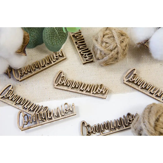 10 Décos à parsemer "Communion" en bois naturel - 4,5 x 1,5 cm