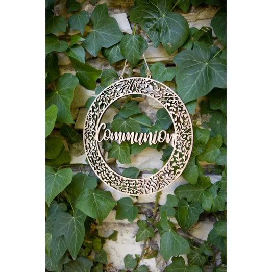 Déco à suspendre "Communion" en bois - Ø 20 cm