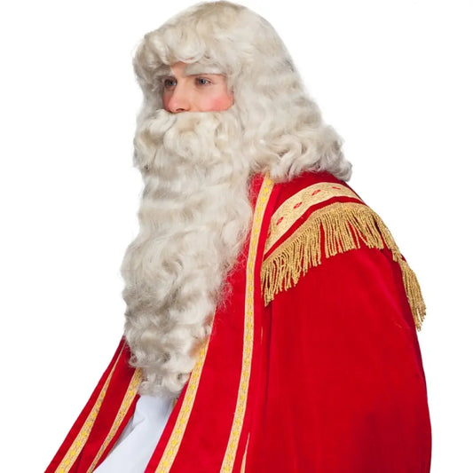 Perruque Père Noël/Saint-Nicolas avec Barbe - Blanche