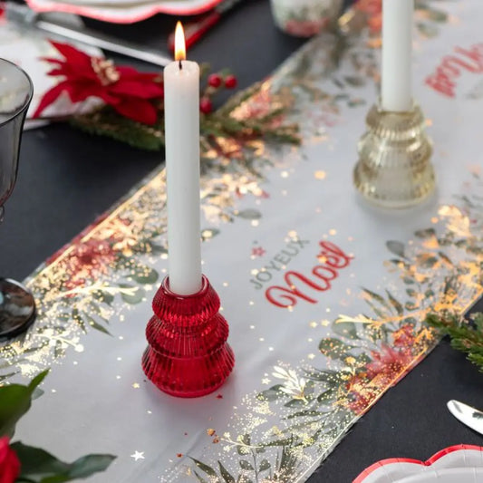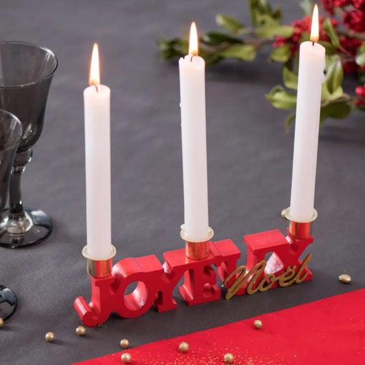 Porte Bougie "Joyeux Noël" Rouge - 23x3x5cm