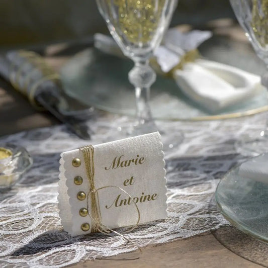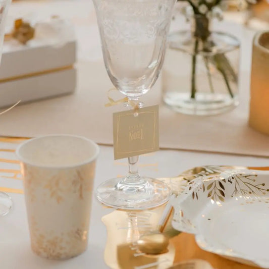 6 Marques Places "Feuilles d'Hiver Ivoire" - 5x5 cm