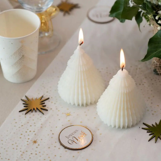 Bougie "Sapin Origami" Ivoire - Ø 7 x 12cm