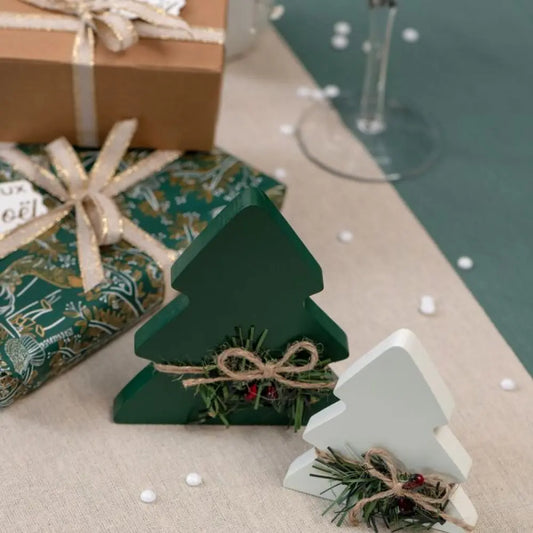2 Décors "Sapins" Vert Sapin/Blanc - 9x1.3x10cm & 11.5x1.3x13cm